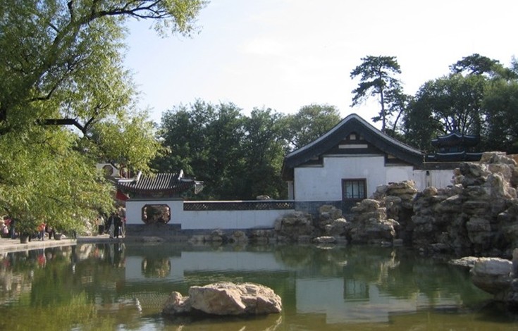 月色江聲在避暑山莊水心榭之北,為一橢圓形島嶼。建于清康熙四十二年(1703年)。臨湖3間門殿,康熙帝題額為“月色江聲”,取意于蘇軾前后《赤壁賦》,每當(dāng)月上東山,滿湖清光,萬籟俱寂,只有湖水微波拍岸,聲音悅耳。島上建筑布局采取北方四合院手法,殿宇之間有游廊相連。門殿西有冷香亭,盛夏可坐此亭賞荷。門殿北為靜寄山房,是清帝讀書處。房后瑩心堂,亦為清帝書齋。