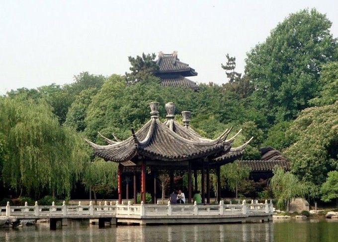 公園由法租界當(dāng)局所建,始于1917年,1922年完工,故稱(chēng)法國(guó)公園。代表性的建筑為花園中心的六角石亭一座(民國(guó)重建時(shí)改為八角亭)。以石亭為中心,向周?chē)牧鶙l路口輻射,各路之間形成不同造型的園林小區(qū)域,小區(qū)域內(nèi)路徑曲折,小橋流水,綠柳成蔭。公園外圍以鐵欄桿繞護(hù),欄桿外為一條環(huán)繞公園的馬路。
