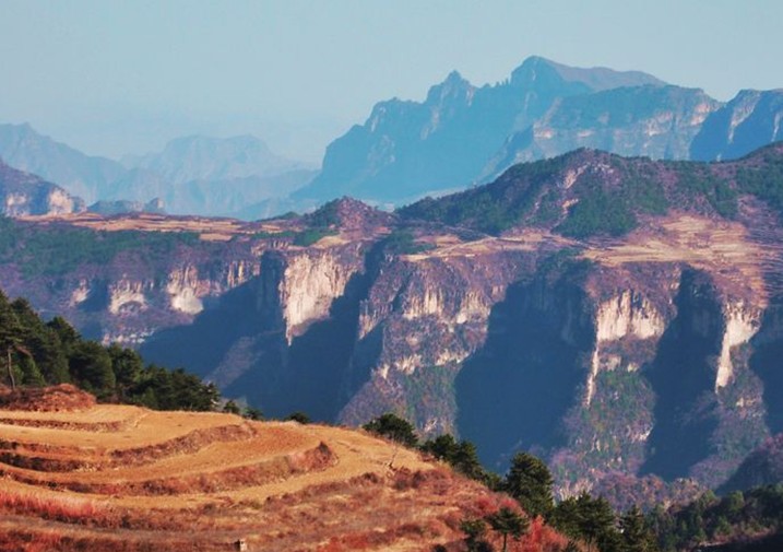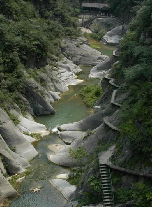 《太平御覽》講:“抱犢山,在上黨東南,高七十丈。” 《隋圖經(jīng)》則說:“抱犢山四面危絕。”公元4世紀初時,我國兩晉時期著名的道教神學奠基人葛洪(自號抱撲子)曾遍游天下名山。他對太行懷抱中的抱犢山評價甚高,以為“稱天下名者,南有武夷,北有抱犢。”把紫團山與武夷山相提并論,這對當代人來講,無論如何是無法想象的事情。因為今天的紫團山其名聲不但已遠不如聲名顯赫的南國武夷,僅以武夷九曲溪那樣秀麗可人且可乘舟游弋的水景而言,即使走遍今日太行峽谷中的每個角落,恐怕也難以覓得一處了。然而,再把話說回來,你如果真是一個對紫團山的歷史有所了解的人,特別是對它的地形地貌做過實地踏勘的人,你則會毫無猶疑的確信,確信葛洪在1500余年前所說的那一番話不但語出事實,而且語焉甚確,毫無夸張?,F(xiàn)在武夷九曲溪水及其所經(jīng)山峽長度約近8公里,歷史上可能更要綿長些;但紫團山峽中的河床谷地其長度絕不在20公里以下。根據(jù)歷史上遺存地貌的觀察分析,古代武夷九曲溪和紫團山峽流景觀的主要區(qū)別應該在于,武夷九曲溪河谷趨于平緩開闊,而紫團峽流由于峽身緊束,區(qū)段落差極大,所以后者比前者肯定會流速迅疾,景色險奇而壯觀。在溪流盤曲環(huán)繞、岸側景色變幻無窮這一點上,兩處名勝則是相似相近的。