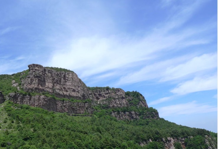 在安澤縣最東部良馬鄉(xiāng)與屯留縣交界處,雄踞著全縣最高的山峰——盤秀山。盤秀山古稱鹿瀆山。山呈西南——東北走向,西南高而東北低,山勢聳峙云端,逶迤彎曲,主峰高陡,支山重疊,其間鑲插有育紅嶺、摩訶嶺,連接著田石山、南屏山。主峰海拔1574米,直插云天異常峻峭,仰視山頂,大有“連峰去天不盈尺,枯松倒掛依絕壁”之感。山體巖石盤曲,蜿蜒百余里。由山底攀藤附巖爬至絕頂“會當(dāng)凌絕頂 一覽眾山小”的感慨油然而生。鳥瞰山容,山態(tài)、山情,神秘幽深,儀態(tài)萬千盤秀山頂有座玉皇廟,共有三間,全部用巨石砌成,保持著宋代建筑的風(fēng)格,室內(nèi)還存有壁畫。在八泉鄉(xiāng)境內(nèi)盤秀山之陰朗,有一懸崖峭壁,高數(shù)十丈。峭壁之上有一清澈見底的泉水,泉水從峭壁直瀉而下,飛珠濺玉,大有“飛流直下三干尺”之勢。飛瀑之下積水一池,長滿了肥美的河草,河草長達兩丈多,浮出水面,碧草游魚,十分引人。山下為絳河源頭,因山嚴(yán)岫盤,孤峰峻峭,如盤龍之勢,山坡松林密茂,百花爭艷,故人稱盤秀山。