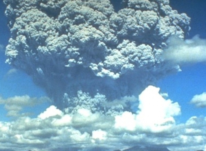 1991年6月15日下午,正當(dāng)臺(tái)風(fēng)經(jīng)過時(shí),皮納圖博火山最強(qiáng)烈的“普林尼式”噴發(fā)開始,火山碎屑流沉積填滿河谷,一個(gè)巨大的火山灰和氣體煙柱進(jìn)入大氣圈,并形成了一個(gè)直徑2.5公里的火山口。為了預(yù)防更強(qiáng)烈的噴發(fā)疏散半徑增加到40公里。然而,臺(tái)風(fēng)和雨使火山灰又濕又重,降落到人口稠密的地區(qū),約200人死在壓塌的屋頂下。臺(tái)風(fēng)加劇了火山泥流,增加了死亡人數(shù)。