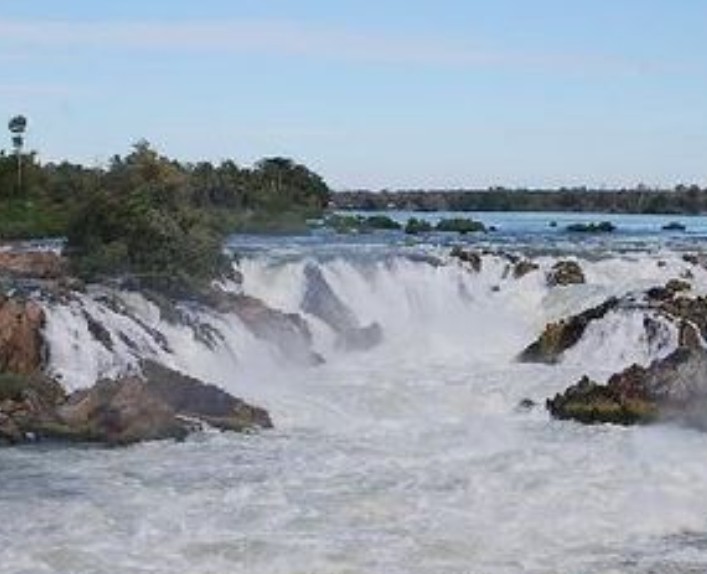 四千美島(For Thousand Islands),屬老撾人民民主共和國(guó)管轄,在老撾南部與柬埔寨接壤的湄公河流域。從北至南流經(jīng)老撾的湄公河,在接近老、柬邊境的地方,有約50公里長(zhǎng)的河道比較寬。雨季到來(lái)時(shí),最寬的地方達(dá)14公里,是湄公河在老撾境內(nèi)最寬的一段“腰”。旱季河水退落,這段“寬腰”會(huì)出現(xiàn)數(shù)以百計(jì)的小島。如果把小渚、沙洲都算上,數(shù)量過(guò)千,當(dāng)?shù)厝寺约涌鋸埦桶堰@個(gè)區(qū)域稱為“四千美島”。