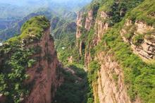 峽谷群有三大景色:一是奇峽。谷底狹深、峽岸壁立、成群出現(xiàn),構成了太行奇觀;二是峻峰。周圍山峰都是幾近90度的紅崖絕壁,峰巒疊嶂,上下錯落,形成了高低變化,犬牙交錯的天際線;三是飛瀑。黃巢巖下有一奇特而又壯觀的瀑布,瀑布不是飛流直下,而由懸崖頂一深潭中翻騰而出,山泉奔流至此,鉆入一石甕,泉水在甕中回旋而出,從數(shù)十米高的峭壁上飛濺而上。站在瀑布之下,水聲、風聲驟起,一股清風寒沁人入五臟,令人備感舒暢。