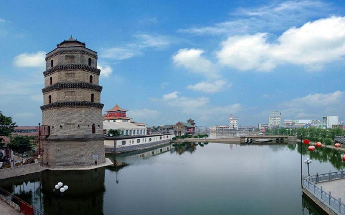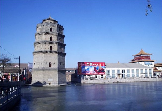 永豐塔 位于巨野縣城東南角,南臨人民路,北距文廟百余米,西面不遠(yuǎn)是永豐街,東面緊靠縣招待所,是縣級重點保護(hù)文物。始建于五代后周(公元951-960年),至北宋年間(公元960一1127年)才建成。塔為磚石結(jié)構(gòu),高30米,為七級八角四門樓閣式,上層周長36米,下層周長44米,塔尖為圓型亭式磚木結(jié)構(gòu),高1.85米,青瓦覆蓋。地面上現(xiàn)存5層,底部2層已淤于地下。