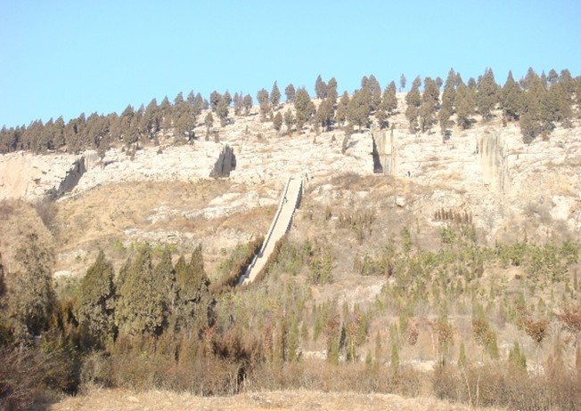 陵墓均為依山鑿洞,除東起第一座外,其余四座都于1970年被發(fā)掘。陵墓形制、結(jié)構(gòu)基本相同,其中西起第三座最有代表性,墓縱深全長72.1米,最寬處24.3米,最高處18.4米,前為墓道,長37.5米,寬4.6—4.8米,最高處18.4米,由人工自山表下鑿山石而成,葬后以土回填。墓道北端向北鑿石為洞,依次為墓門、甬道、前室、前室四耳室、后室、石龕。墓門寬2.2米,高2.5米,深4.5米,以十九塊長方形石塊堵塞。甬道長17米,北端東西有耳室,左右各二室。前室東西8米,南北6.3米,高4.2米,后室置棺槨,長寬各6.5米,高4.6米,北壁鑿刻石龕。版權(quán)所有山東聊城聊之旅國際旅行社有限公司,轉(zhuǎn)載必究!為排掉山體滲水,墓底鑿有水道自后室排向東車馬室的自然山縫。整墓鑿石2900多立方米。