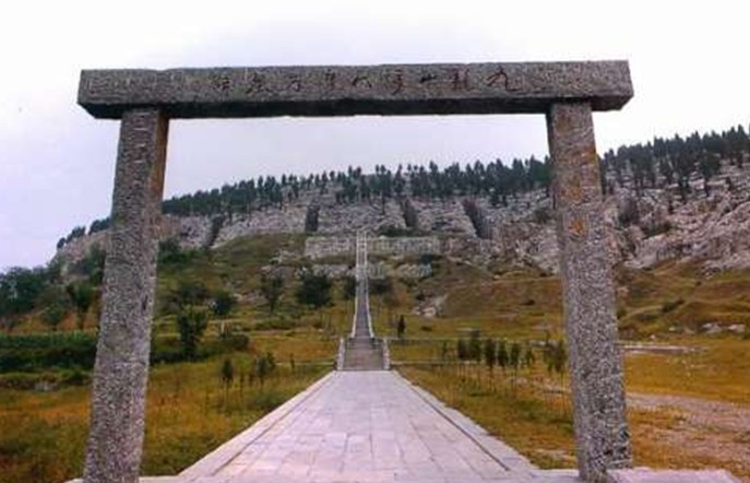 陵墓均為依山鑿洞,除東起第一座外,其余四座都于1970年被發(fā)掘。陵墓形制、結(jié)構(gòu)基本相同,其中西起第三座最有代表性,墓縱深全長72.1米,最寬處24.3米,最高處18.4米,前為墓道,長37.5米,寬4.6—4.8米,最高處18.4米,由人工自山表下鑿山石而成,葬后以土回填。墓道北端向北鑿石為洞,依次為墓門、甬道、前室、前室四耳室、后室、石龕。墓門寬2.2米,高2.5米,深4.5米,以十九塊長方形石塊堵塞。