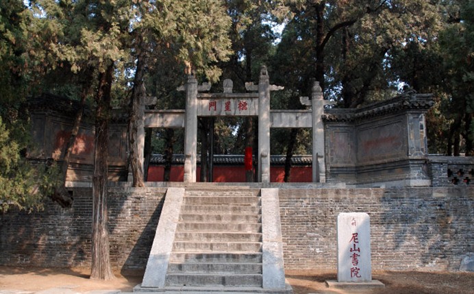 尼山書院,位于山東曲阜縣城東南30公里處的尼山原名尼邱山,因避孔子諱而改名為尼山。海拔340余米,山頂五峰連峙,惟中峰為尼丘。據《史記》記載:孔子父母“禱于尼丘而得孔子”,故尼山名揚遐邇。這里,中峰東麓有孔子廟和尼山書院等建筑物;另有五老峰、魯源林、智源溪、坤靈洞、觀川亭、中和壑、文德林、白云洞等所謂“尼山八景”。