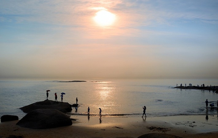 3、老爺頂觀日出 :為阿掖山主峰,其石“巍峨峭拔,紱繞如椅望”。立于其上,向東可觀日出扶桑,飄渺三島(即前三島),南視“秦山(海州灣內(nèi)——島嶼)海市”為佳景,令人嘆絕。夜眺景色更佳,北望日照港十萬噸級碼頭如龍臥波;南望嵐山港燈火輝煌,燦若繁星;遠(yuǎn)望連云港巨輪穿梭,燈火通明,一山觀三港,唯有此處。