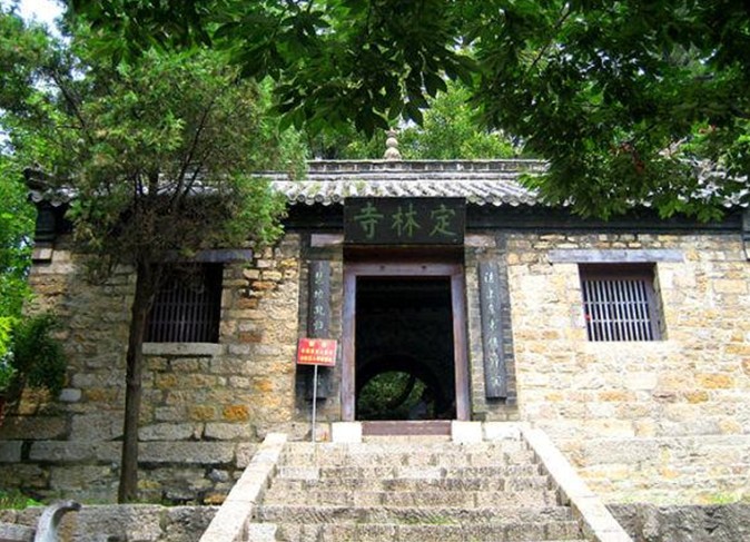 在山東莒縣浮萊山定林寺內(nèi)。定林寺,相傳始建于南北朝,今存建筑為清代重修。主要建筑有大佛殿、三教堂、校經(jīng)樓等。校經(jīng)樓原名毗盧閣,相傳為劉勰校閱經(jīng)籍處,故名。劉勰(465—532年)字彥和,莒(今山東莒縣)人。篤志好學,梁武帝時,曾任奉朝請、東宮通事舍人等職,為昭明太子蕭統(tǒng)所器重。晚年在定林寺出家,法名慧地。