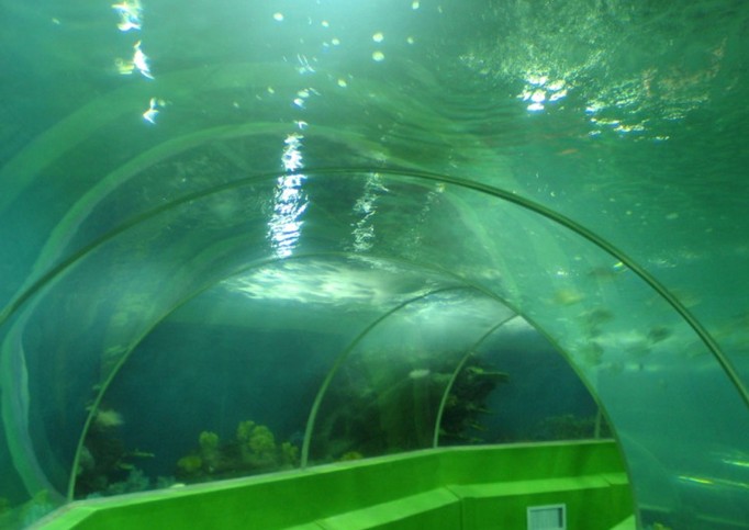 日照海洋館內(nèi)有亞洲最長的168米仿海底亞克力觀光隧道和直徑最大為6米的亞克力單體景觀柱,成為日照沿海一線風(fēng)景區(qū)中最為壯麗的景觀。