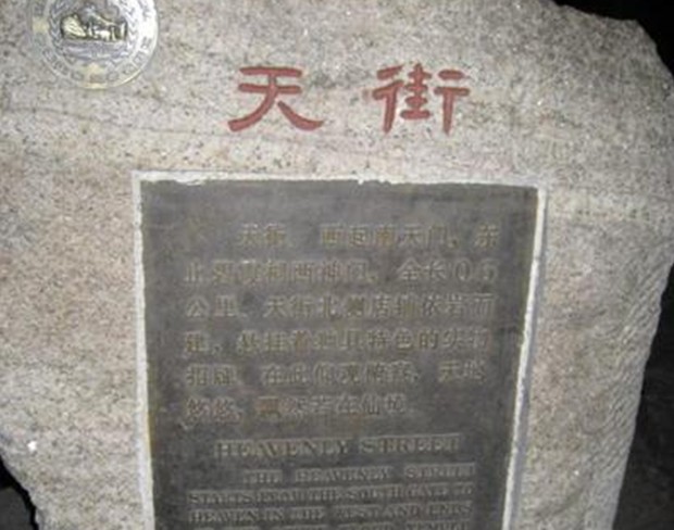 進(jìn)了南天門(mén)再上兩層臺(tái)階就是天街,天街自古以來(lái)就似懸在天上的一條街市。古代的香客,現(xiàn)在的游人都對(duì)這條街存有深刻的印象。在長(zhǎng)約千米的天街上布滿(mǎn)了賓館、飯店、商鋪。據(jù)記載,天街從清代就開(kāi)始繁華,當(dāng)時(shí)的一些店鋪老板用實(shí)物作為招牌,如“棒槌”、“木碗”、“鸚鵡”等。