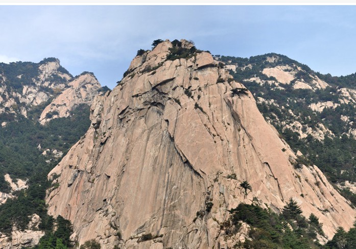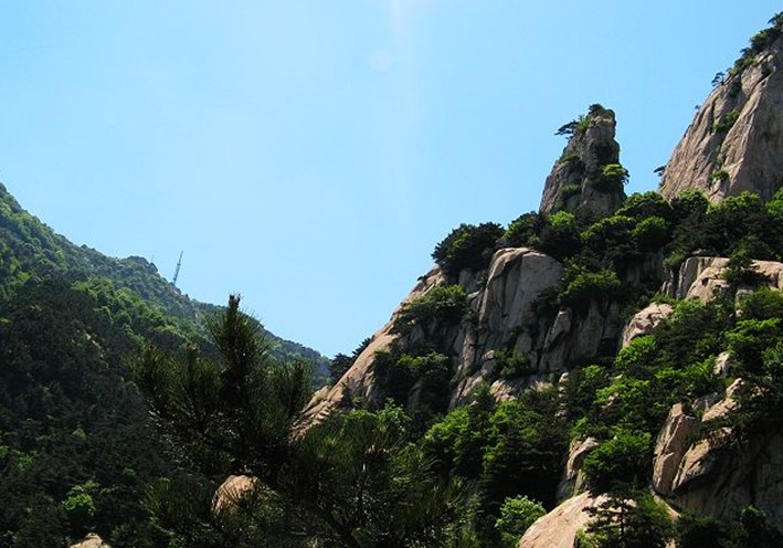 在泰山的東北麓,有一條蜿蜒曲折的登山路直達岱頂。沿著這條路,可見天燭峰景區(qū)的景致。這里,奇石能言,清泉有聲,大小天燭朝天立,懸崖巨壁夾谷行。將軍山如大將軍披甲,羅漢峰似眾羅漢疊立,大自然的神奇造化,令人嘆為觀止。這里,藍天高遠,大山空曠,松濤陣陣,白云悠悠,是尋古探幽的好去處,只有到這兒來,才能領略到山林野趣的真諦。