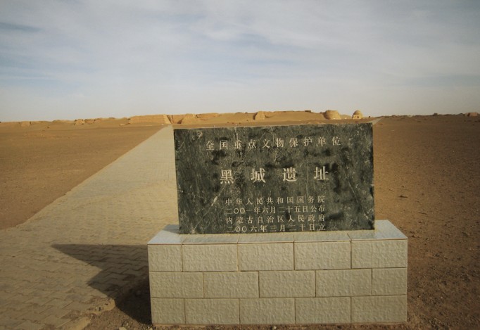 黑城遺址位于內(nèi)蒙古額濟(jì)納旗達(dá)來呼布鎮(zhèn)東南25公里處,是古絲綢之路上現(xiàn)存最完整、規(guī)模最宏大的一座古城遺址。該城建于公元九世紀(jì)的西夏政權(quán)時期。公元1372年明朝大將馮勝攻破黑城后遭廢棄。至今城內(nèi)還埋藏著豐富的西夏和元代等朝代的珍貴文書。近年來,由于周邊地區(qū)沙化嚴(yán)重,流沙從東、西、北三面侵蝕黑城,許多遺址已埋于沙下。文物保護(hù)工作者呼吁有關(guān)部門盡快行動起來,搶救性保護(hù)黑城遺址。