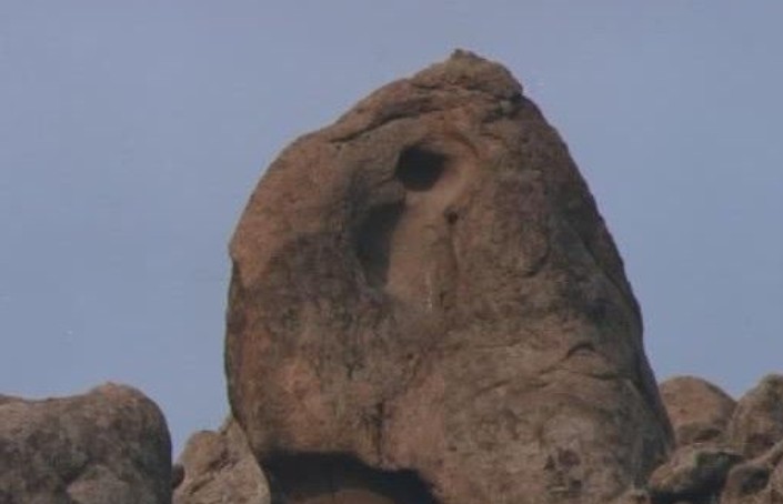 腳下的沙原不時(shí)裸露石頭的底色,一塊塊突起,應(yīng)著蒼天。這就是神石溝的石齦。石頭上凹陷的地方汪著雨水,水里流走著藍(lán)天白云,微風(fēng)掠過,水汪里蕩開幾紋水波,白云藍(lán)天在水汪里褶皺。突然內(nèi)心深處生出來想喝這些雨水的欲望,很強(qiáng)烈,意識(shí)決定行動(dòng),身子俯下,水影里的藍(lán)天白云被擠走,才發(fā)現(xiàn)水的底部竟然有幾粒被雨水浸泡的膨脹了,還泛著微白的羊糞蛋。它們的出現(xiàn),戛然遏止了我的欲望。 神石溝就到了,反映在腦際的依然是神奇,是現(xiàn)實(shí)的神奇,乃至驚異。我斷然決定這不是“溝”,是“海”,是石頭的海洋??茨倾葶菔耍?fù)碇?,翻卷著,拍打著涌向天際。再看石海憤怒了,驚濤萬丈,拔石成峰;時(shí)而舒緩,平和,鼓蕩著浪花,一浪推一浪,一浪裹一浪。