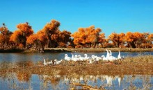 在漫漫黃沙中的這片綠洲上,碧水邊,有過許多傳說,也曾發(fā)生過許多動人的故事。相傳,西漢的驃騎將軍霍去病、“飛將軍”李廣,進(jìn)攻匈奴時都曾在居延澤飲馬。據(jù)說,在元朝時,意大利人馬可波羅也曾到過居延海。而唐代大詩人王維更是曾于湖畔駐足,并寫下了著名的《塞上作》一詩:“居延城外獵天驕,白草連天野火燒,暮云空磧時驅(qū)馬,秋日平原好射雕。” 現(xiàn)代學(xué)者董正鈞在所著的《居延?!芬粫忻枋龅?ldquo;湖濱密生蘆葦,入秋蘆花飛舞,宛若柳絮。馬牛駝群,隨處可遇。鵝翔天際,鴨浮綠波,碧水青天,馬嘶雁鳴,綴似蘆草風(fēng)聲,真不知天上人間”的詩作,把居延海的美景表現(xiàn)得淋漓盡致,也曾帶給我們無限的遐想。