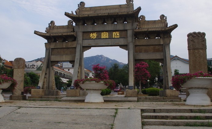 岱宗坊位于岱廟北(岱宗大街北側(cè)的紅門路南首),為一跨道石坊,登泰山由此開始,明嘉靖年間建。
