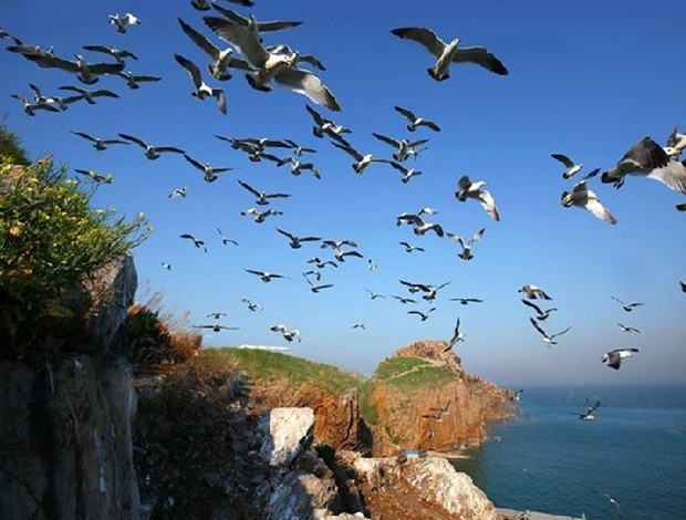 海驢島每逢春季,成千上萬的海鷗來此棲息產(chǎn)卵,巖縫中鳥巢鱗次櫛比,數(shù)不勝數(shù),所以又被稱為海鷗王國。島上威峰兀立,四周海水浩瀚碧藍(lán),與成千上萬只海鷗構(gòu)成的雄偉景觀,不僅令人嘆為觀止,神凝形釋,故海驢島有“海鷗王國”之雅號。海驢島相傳為豬八戒當(dāng)年用扁單挑著一只雞和驢過海時,因天將破曉,雞鳴驢嚎,不慎將雞和驢落入海中而化為雞鳴島和海驢島。