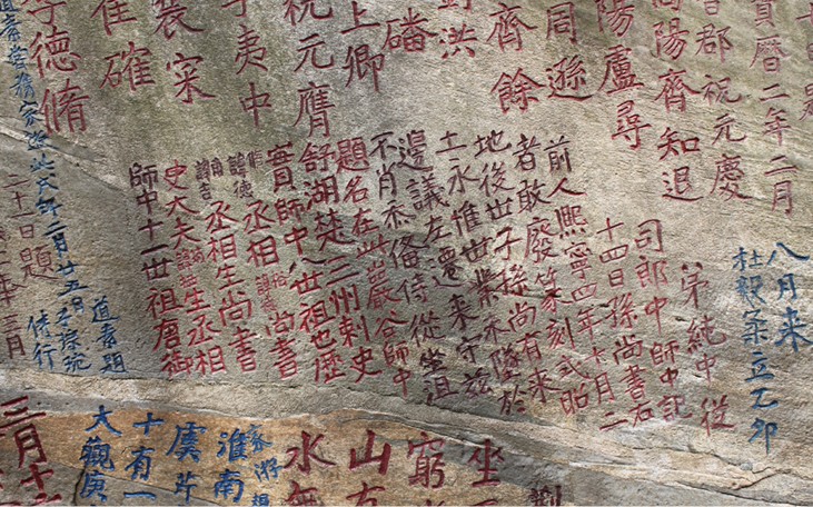 元代以后,眾多游客蜂擁山谷,也留下大量的文字石刻。除了式照唐宋時的題名、題詩以外,在石刻文字的內容方面出現(xiàn)一些新的變化,比如出現(xiàn)了大量的用簡短詞語贊嘆山、洞、泉、石景色的特點。同時,石刻文字的體積增大,字徑往往有一、二尺之多,這都是過去所少見的。明代詩人、安慶知府胡纘宗在石牛上大書“石牛”2字,并刊刻了《山谷寺》詩:“摩詩坐山谷,谷水身邊流,篆密龍蛇動,潭空牛女游”, 版權所有山東聊城聊之旅國際旅行社有限公司,轉載必究!此詩十分形象地描繪了石牛臨澗的景色,令人涌不絕口。胡纘宗還有“山谷”大字題刻,字徑2尺。其它像嘉靖時御史大夫李元陽、成化時書法家袁慶祥等人的題名以及大量的“涪涪山谷”、“流云上流”、“天下奇觀”、“水光天色”、“龍門”、“獨醒處”、“安慶名山”、“幽思”等,都有一定的歷史研究與欣賞價值。從書法的角度看,這里的石刻包括有隸書、楷書、草書、篆書、行書等多種,每種書體中又富于變化,各具特色,基本上代表了唐代以來我國書法藝術發(fā)展演變的風貌,是一處珍貴的書法藝術寶庫。