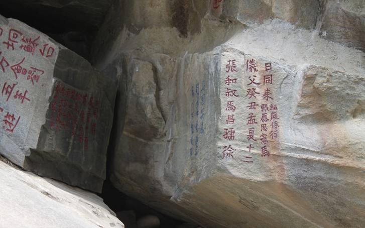 北宋皇?三年(1051年),時任舒州通判的王安石與弟王安國游覽山谷,坐石聽泉,寫詩以詠其勝?,F(xiàn)存題名刻石文字為“皇?三年九月十六日自泉州之太湖過寺宿,與道人文銑、弟安國擁火游見李翱習之書,坐石聽泉久之,復游,刻習之書后,臨川王安石。”所賦六言詩為:“水無心而宛轉,山有色而環(huán)圍,窮幽深而不盡,坐石上以忘歸”。這位被譽為中國11世紀的改革家的王安石,在掀起神宗變法大潮之前,版權所有山東聊城聊之旅國際旅行社有限公司,轉載必究!居然有閑情逸致,于此寧靜聽泉。這上物證的發(fā)現(xiàn),當有助于人們研究他的思想變化的歷程。北宋無豐三年(1080年),著名書法家黃庭堅也曾至山谷攬勝。他在游覽了山谷寺、石牛洞之后,一連寫了《青牛篇》、《書石牛溪大石上》、《題靈龜泉石上》、《題山谷大石》等詩文。他酷愛此地山水,因此自稱山谷道人。以曾坐在山溪石牛上,讓大畫家李公麟為之畫像。在石牛洞東側懸崖頂端,尚存一處由黃庭堅手書的楷書題名:“李參、李秉夷、秉文、吳擇賓、丘揖觀余書青牛篇,黃庭堅庚中小寒”,書法工整穩(wěn)健,筆鋒堅勁,波磔分明,是傳世稀少的黃氏真跡,彌中珍貴。