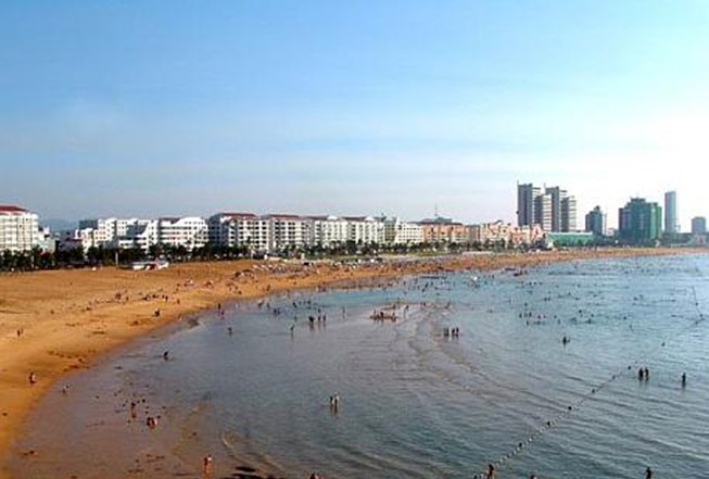 浴場海岸線全長2800余米,東有麻枷山,西有煙墩山,遙相呼應(yīng),有萬畝松林帶環(huán)繞,海岸線全長2800余米,沙灘面積為10萬平方米,沙質(zhì)柔細,海水清澈,灘坡平緩,可同時容納4至5萬名游客,點綴于海岸邊的花草、石雕、五色彩棚,更顯風(fēng)光綺麗,構(gòu)成了一幅山、海、林、人于一體的美麗圖畫。