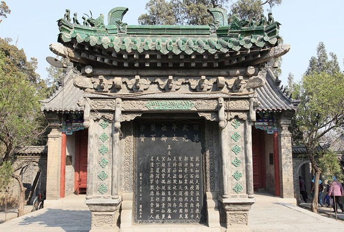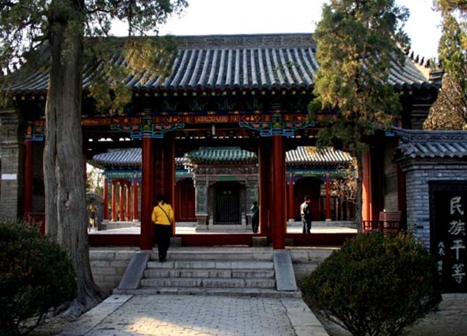 二門(mén)是單檐硬山式建筑,面闊三間,建筑面積四十五平方米。中柱五十多公分,六扇朱漆大門(mén),檐頭雕刻伊斯蘭教經(jīng)文和圖案,工藝精湛。門(mén)內(nèi)南北兩扇墻上,鑲有四塊石碑,記述該寺歷史修二門(mén)記和禮拜時(shí)辰。三個(gè)大門(mén)上面均有匾額,正中是明成化丙戌科進(jìn)士劉瓚題字“開(kāi)天正教”; 版權(quán)所有山東聊城聊之旅國(guó)際旅行社有限公司,轉(zhuǎn)載必究!右為清代鎮(zhèn)守山東登州等地的總兵官軍提督密勇巴圖魯馬建紀(jì)題字“默德真?zhèn)?rdquo;,左為清康熙二十三年掌教趙璜、張養(yǎng)心、劉翰美題字“瞻天仰圣”?,F(xiàn)存二門(mén)為乾隆二十年重修。