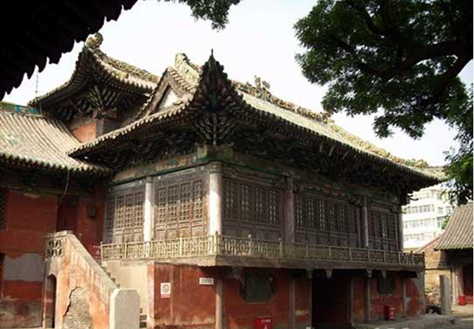 戲樓系楊氏宗祠的一部分。楊氏宗祠為三廳兩廂,總面積為6千平方米。古戲樓位于前廳,離地面2. 8米。中為正臺,左右為副臺。正臺寬5.5米,臺深6米,空間高約為3米,臺口有雕花欄桿,面積33平方米。版權所有山東聊城聊之旅國際旅行社有限公司,轉載必究!正臺側正中有兩扇雕花木門,木門兩側各有一圓形洞門,分別供出場和下場用。兩邊的副臺各40平方米,可供樂隊伴奏、演員化妝、更衣等用。樓下正中為大門通道,兩邊有廂房,可供藝人住宿。戲樓面朝大廳,臺前為天井,兩側建有看樓可容納觀眾800余人。