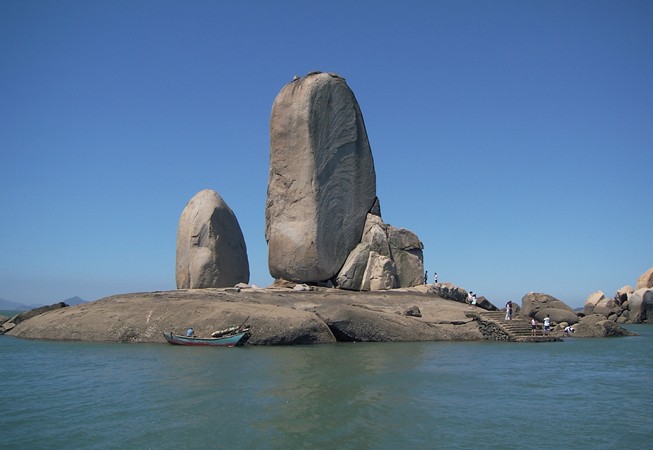 從看澳村岸邊坐渡船,十幾分鐘就到達礁石上,礁石底部是一組平坦完整的巖石。兩個石柱均由粗?;野咨幕◢弾r組成 東側的一個高達33米,胸寬9米,厚8米;西側的一個高17米,胸寬15米,厚8米。版權所有山東聊城聊之旅國際旅行社有限公司,轉載必究!兩個石柱的底部都是近似四方形體,直立在礁石上。據(jù)地質學家考證是世界上最大的花崗巖球狀風化海蝕柱。由于它的奇特壯觀,對游人有著強烈的震撼力和吸引力。建設部與中科院的專家稱之為:“壟斷性的世界級旅游資源。”明代旅行家陳第曾譽之為“天下奇觀”, 清朝女詩人林淑貞詩贊:“共說前朝帝子舟,雙帆偶趁此句留;料因濁世風波險,一泊于今纜不收.