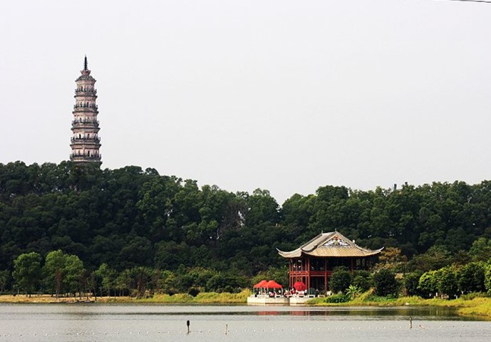 太平塔坐落在彰發(fā)山的皖光苑內(nèi)。據(jù)舊志記載:“太平塔始建于晉咸和間(326-334年),寺前有太平塔,塔前有真武殿,殿后有玉皇閣、石華表?!?太平塔為七層八樓閣式磚塔,高43米,磚仿斗拱結(jié)構(gòu),外旋中空,弧檐翹角。塔體內(nèi)外壁鑲嵌磚雕佛像近千尊,形象生動。