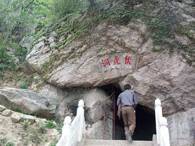 伏虎洞位于冶父山巔西南,距伏虎寺不足百米,石階路上側(cè)。沿高數(shù)尺,深不滿丈,游客須彎腰方能入內(nèi)。據(jù)《冶父山志》載,伏虎禪師當(dāng)年開山建剎時,曾與住此洞的老虎棲息一起形影不離。有詩為證:“古跡山深虎跡通,法幢人靜夜燈紅,支床睡破勞生夢,不信因緣為遠(yuǎn)公。”當(dāng)?shù)孛耖g傳,患有腰痛者,進(jìn)山入洞采附近山竹,截成竹節(jié)支撐洞壁,腰疼即愈。伏虎洞前坡極陡,洞口朝陽,若逢西南風(fēng),風(fēng)灌洞聲若虎嘯,音傳數(shù)里,古稱“虎洞吟風(fēng)”,是冶父八景又一景觀。相傳在唐朝時期,一戶人家生一雙目失明的孩子,將他遺棄在路邊,被一斑斕猛虎撞見,銜入此山洞中。奇怪,那只老虎不但不吃這孩子,還小心地喂他,并用虎爪刨出了泉水,給孩子洗眼,孩子的眼睛奇跡般地復(fù)明了,孩子長大后出家當(dāng)了和尚。那只老虎與他形影不離,相依相伴。唐昭宗得知此事,大為贊賞,稱他為伏虎禪師。伏虎洞——“虎洞吟風(fēng)”也因此而馳名。