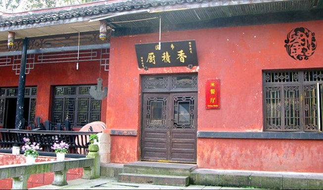 許多規(guī)模比較大,歷史比較久遠(yuǎn)的寺廟廚房的名稱。大雄寶殿右側(cè)為香積廚,是寺僧的齋堂。香積廚中有洗碗、洗菜用的石池、石槽,是宋朝天圣年間制造的。做飯用的四口大鐵鍋,也是該寺的“三鐵”之一。
