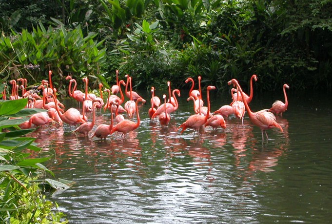 新加坡的裕廊飛禽園內(nèi)建有95個(gè)鳥(niǎo)舍、10個(gè)活動(dòng)場(chǎng)所和6個(gè)池塘,養(yǎng)有380多種飛鳥(niǎo),約4600只,其中有29種受威脅鳥(niǎo)類。園內(nèi)廣泛搜羅了東南亞及世界各地的鳥(niǎo)類,有來(lái)自西班牙的紅鶴、來(lái)自北京的知更鳥(niǎo)、來(lái)自幾內(nèi)亞的食火雞、來(lái)自巴西的三趾鴕鳥(niǎo)、有羽毛絢麗的熱帶鳥(niǎo)和來(lái)自冰天雪地的南極企鵝等,是個(gè)“花木四時(shí)茂,人來(lái)鳥(niǎo)不驚”的“鳥(niǎo)類王國(guó)”。園中修建有四通八達(dá)的柏油小徑,不愿步行者也可選游覽車。