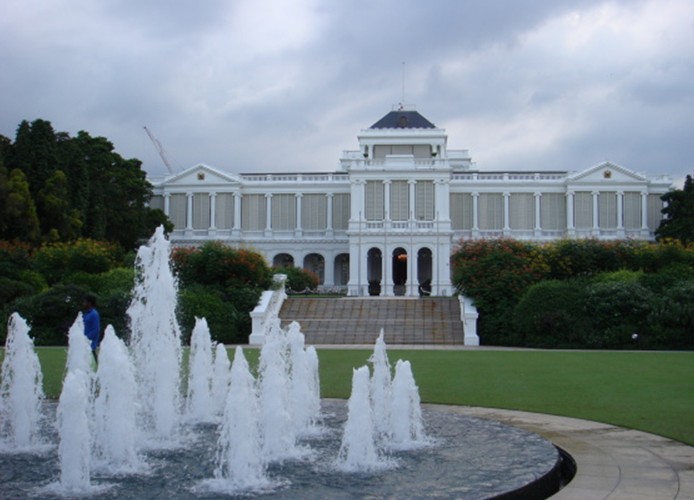 那是一個(gè)座落在新加坡著名購(gòu)物中心烏節(jié)路(Orchard Road)頭的歐式公園,緊鄰著新加坡人最喜歡去的Plaza Singapura購(gòu)物中心。所以,一般很難想象那里和喧鬧的商業(yè)中心緊挨著,竟然是新加坡最高元首和政府首腦的辦公地點(diǎn)。外交禮儀如接見胡錦濤主席和英國(guó)女皇的儀式都是在總統(tǒng)府里舉行的,那里就像是新加坡的中南海。據(jù)說歷任新加坡總統(tǒng)都是在那里面居住,但是現(xiàn)任總統(tǒng)納丹卻比較例外的住在市區(qū)外的一所小房子里。