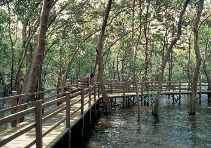 公園是由一個游人中心和三條人行道組成的。這三條人行道都有幾公里長,為了保存自然風味,它們都是由碎石細沙鋪成的,每一條路都能把游人帶到不同的風景點,如傳統(tǒng)養(yǎng)蝦池淡水池等。為了使生態(tài)環(huán)境的破壞程度降到最低點,園內(nèi)所有設(shè)施,如橋梁、亭子、觀鳥屋等都用木頭建造,園里的道路也是原始的,沒鋪柏油或石板,絕大部分的花木也都是自然繁殖的。
