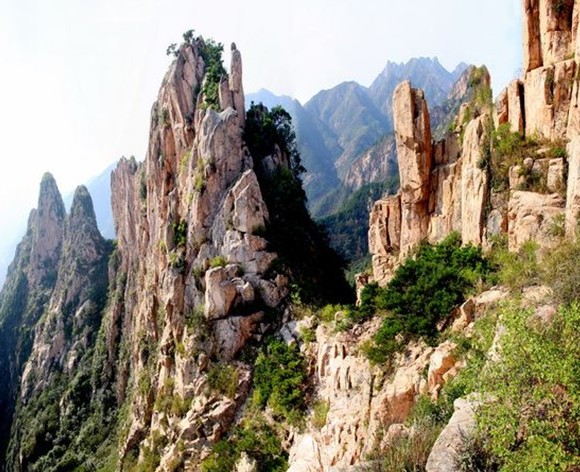 崮山奇峰怪嶺,崖懸壁峭,版權(quán)所有山東聊城聊之旅國(guó)際旅行社有限公司,轉(zhuǎn)載必究!崮頂高聳入云,四周常有云霧繚繞,故有“南崮北崮,隔天一步”之說(shuō)。建國(guó)后封山育林,栽松植果,林地面積大增,喬木以黑松為主,隨著樹(shù)齡的增長(zhǎng),與崮山奇石相襯,觀賞價(jià)值在不斷提高。林海茫茫,山花漫漫,景觀引人入勝,于是每年春夏之時(shí),游人絡(luò)繹不絕,已自發(fā)形成游覽景區(qū)。