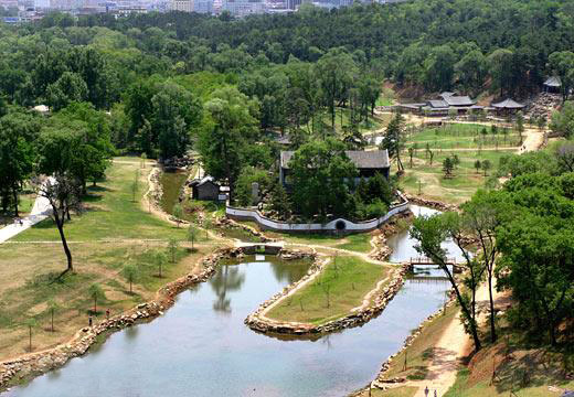 平原區(qū)位于山莊北部,占地60.7萬平方米。平原區(qū)主要是一片片草地和樹林。其中又分為西部草原和東部林地。草原以試馬埭為主體,是皇帝舉行賽馬活動的場地。林地稱萬樹園,是避暑山莊內(nèi)重要的政治活動中心之一。當(dāng)年這里有萬樹園,園內(nèi)有不同規(guī)格的蒙古包28座。其中最大的一座是御幄蒙古包,直徑達7丈2尺,是皇帝的臨時宮殿,乾隆經(jīng)常在此召見少數(shù)民族的王公貴族,宗教首領(lǐng)和外國使節(jié)。萬樹園西側(cè)為中國四大皇家藏書名閣之一:文津閣。另外還有永佑寺、春好軒、宿云檐等組建急筑點綴在草原、林地之間。