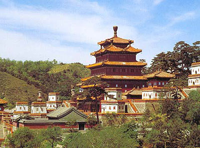在避暑山莊周圍依照西藏、新疆喇嘛教寺廟的形式修建喇嘛教寺廟群,供西方、北方少數(shù)民族的上層及貴族朝覲皇帝時禮佛之用。在避暑山莊的東面和北面,武烈河兩岸和獅子溝北沿的山丘地帶,共有11座寺院。因分屬8座寺廟管轄,其中的8座由清政府直接管理,故被稱為“承德外八廟”。廟宇按照建筑風(fēng)格分為藏式寺廟、漢式寺廟和漢藏結(jié)合式寺廟三種。這些寺廟融和了漢、藏等民族建筑藝術(shù)的精華,氣勢宏偉,極具皇家風(fēng)范。這12座建筑風(fēng)格各異的寺廟,是當(dāng)時清政府為了團結(jié)蒙古、新疆、西藏等地區(qū)的少數(shù)民族,利用宗教作為籠絡(luò)手段而修建的。這些廟宇多利用向陽山坡層層修建,主要殿堂聳立突出、雄偉壯觀。