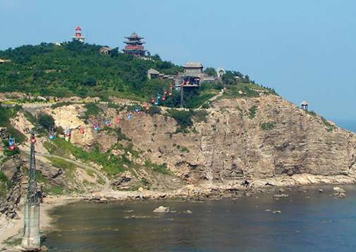 田橫山俗稱老北山,地處蓬萊陸地最北端,也是膠東半島最北端,這塊突入海中的陸地岬角稱為登州岬或蓬萊岬,是渤黃二海的分界處,具有“一山分二海”的獨特地理位置。東與丹崖山隔一小海灣相接,石壁高峻;西、北兩面半浸海中,形勢險要。漢時韓信破齊,齊王田橫率其徒五百人東走,曾筑寨于此,因此得名。明萬歷二十一年(1594年),為鞏固海防,明廷調(diào)浙江兵卒于此戍守,在山上筑起城垣和署衙廨宇。清光緒二十年(1895年),中日甲午戰(zhàn)起,登州統(tǒng)領(lǐng)夏辛酉在山上筑起炮臺,架起愛母斯郎炮數(shù)門,守護海口,兼為旅順之聲援。這里既有山海勝境,又有歷史遺跡,隨著旅游事業(yè)的發(fā)展,到這里探古覽勝的游人不斷增加。 1993年,田橫山與丹崖山之間架起了一條跨海索道,這里成為蓬萊閣旅游區(qū)的一個組成部分。在跨海索道上乘坐纜車,仰望前后兩側(cè)的仙山瓊閣,俯瞰大海的萬里澄波,聯(lián)想三神山的迷人神話,會不由自主地產(chǎn)生一種飄飄欲仙的感覺。(跨海索道全長481米,高點海拔50.7米,相對落差26.3米,采用單循環(huán)半包吊椅式結(jié)構(gòu),共設纜座54個,日可載客5340人次,是山東省第一條海上索道。它區(qū)別于其它索道的地方就是可以搭乘纜車領(lǐng)略海上風光,在感受上是別有情趣的。