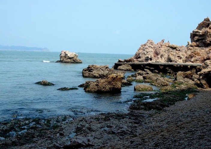 傳說八仙在蓬萊閣上飲酒作樂,酒酣之后,各持寶器走進大海,在風濤海浪里顯示各自的神通,不一會兒便漂向了遙遠的海天相接處,而他們的形骸卻羽化成八塊礁石。這片礁石,已經(jīng)被海浪沖涮出一副滄桑模樣,但是仔細辨認,張果老的驢子,鐵拐李的丫丫葫蘆,以及八位仙人或臥或仰、或坐或立的形態(tài)卻依稀可見。