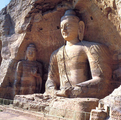 石窟始鑿于北魏興安二年(公元453年),大部分完成于北魏遷都洛陽之前(公元494年),造像工程則一直延續(xù)到正光年間(公元520~525年)??咧衅兴_、力士、飛天形象生動活潑,塔柱上的雕刻精致細膩,上承秦漢(公元前221年~公元220年)現(xiàn)實主義藝術(shù)的精華,下開隋唐(公元581~907年)浪漫主義色彩之先河,與甘肅敦煌莫高窟、河南龍門石窟并稱“中國三大石窟群”。