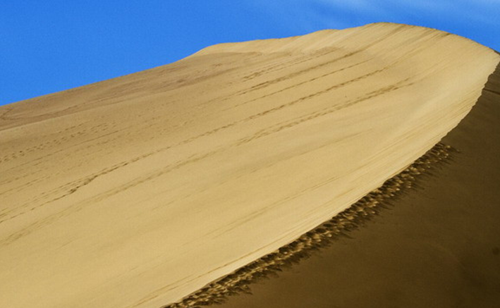 由于山勢陡峭,攀登只能緩緩而上。下山時(shí),沙粒會(huì)隨人流動(dòng),發(fā)出管弦鼓樂般的隆隆聲響,真是扣人心弦。