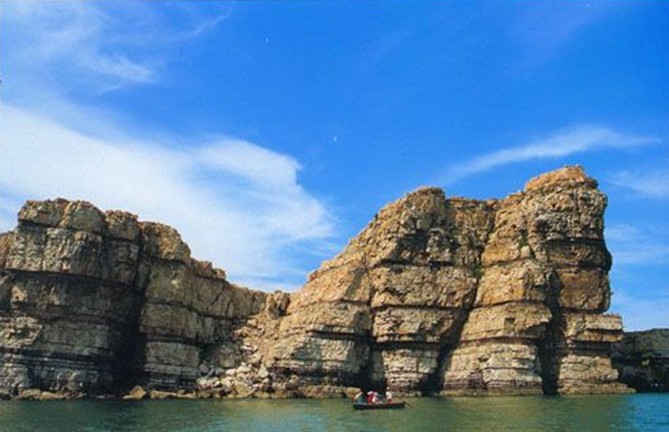 高山島,屹立于廟島群島中部西側(cè),隸屬砣磯鎮(zhèn)。這個(gè)面積僅有0.46公里的無居民小島,在諸島排列中列第12位。它集海蝕崖、海蝕洞、海蝕柱、海蝕礁、海蝕階地和海積卵石灘于一身;納高雄、險(xiǎn)峻、幽深、粗獷靈秀于一隅。它裸露著胸懷,放蕩無拘地把海島的地質(zhì)遺跡向世人全方位的展示,可謂長(zhǎng)島地區(qū)地質(zhì)遺跡的“天然地質(zhì)公園”。