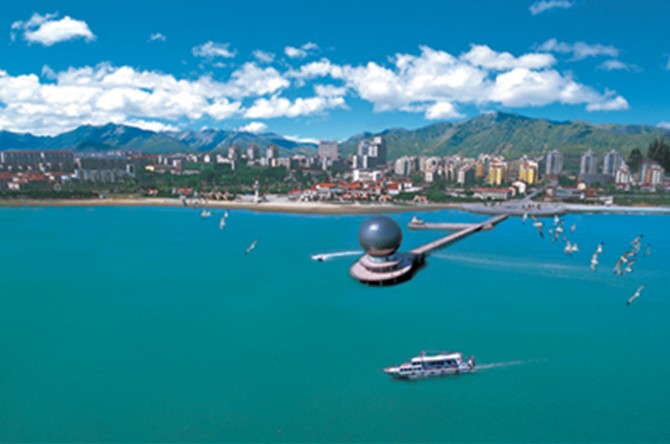 城區(qū)內景點的建設由海域和陸地兩部分組成,海域內具體建有黃海棧橋、黃海明珠、海水浴場;陸地景點建設具體有黃海藝術博物館、奇石館,室內植物園和室外生態(tài)植物園。