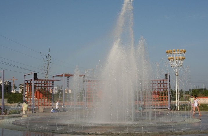 蜆河公園南大門及五龍廣場,總占地13.2萬平方米,其中:主門及兩側(cè)商業(yè)房建筑面積1萬平方米,廣場面積7萬平方米,廣場綠地5萬平方米,人工湖面積6.64萬平方米,總投資1600萬元。五龍廣場中心為五龍雕塑、噴泉,廣場周圍安裝百盞觀賞燈、射燈,夜間一片燈火輝煌。尤其由18根玉白色立柱組成的大門主體,橫跨百米,氣勢恢宏,被省專家譽(yù)為“山東第一門”。