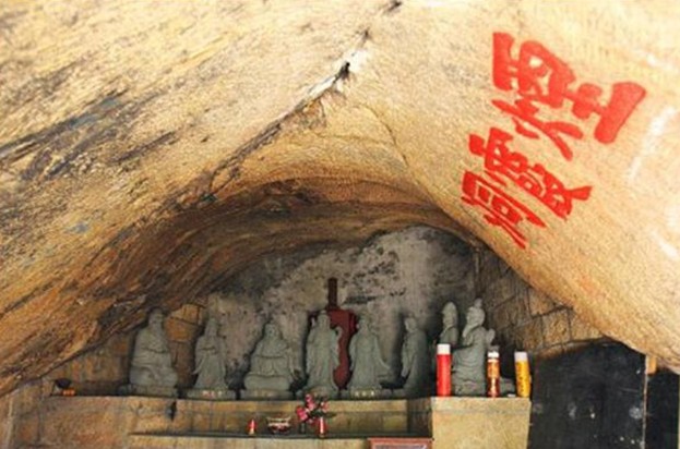 煙霞洞,位于山東煙臺(tái)昆崳山西北隅,由一突兀巖石自然造化而成。洞室呈橢圓形,深7米,高3米,洞壁上刻“煙霞洞”三個(gè)大字。洞內(nèi)供奉著“七真人”雕像。洞外,峰巒環(huán)抱,壑谷幽邃,杉柞掩映,危巖矗立,石徑回繞,逶迤多姿,奇秀壯觀。每當(dāng)陰霾天氣,山頭白云繚繞,滴翠浮青,云海如浪,煙霧繚繞,并時(shí)有霞光出現(xiàn),或明或暗,宛若煙霞縹緲,景色奇絕。此洞僻靜清幽,背山傍水,藏風(fēng)聚氣,歷來成為道人居士潛心修煉、講道闡玄之處。金大定七年(1167),咸陽道士王重陽自終南山云游東下,聚徒講道于煙霞洞中,并收丘處機(jī)等七個(gè)弟子,號(hào)稱“北七真人”,以此為中心,在寧海(牟平)、文登、萊州等地傳道,創(chuàng)立了道教中的一個(gè)新的宗派――全真派。煙霞洞即成為創(chuàng)立教派的“洞天福地”。“七真人”中以丘處機(jī)最為有名,被元太祖成吉思汗封為國師,尊為“神仙”,成為統(tǒng)領(lǐng)全國道教的一代宗師,使全真教得以在全國盛行。