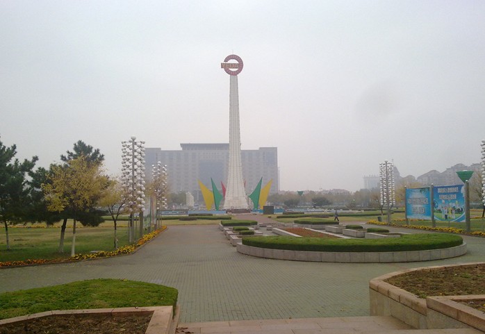 天地廣場位于煙臺經(jīng)濟技術(shù)開發(fā)區(qū)中心,北臨長江路,南接珠江路,占地24萬平方米,1994年開工建設(shè),1998年竣工開放。廣場以綠為基調(diào),突出自然植物主體,點綴雕塑、小品等人工景物。中軸線將廣場分成南北兩個觀賞群,以表達天地廣場的含義。北為與“天”有意的“太陽”廣場,中心向外采用放射狀道路,以形似陽光,南為與“地”有意的“大地”廣場,中心圍以規(guī)劃的環(huán)狀道路,以形似大地。
