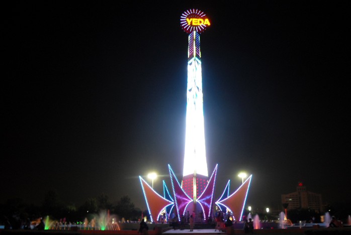 廣場上豎立著中國煙臺經(jīng)濟技術(shù)開發(fā)區(qū)的區(qū)標(biāo),碑體高33米,呈三角立體形,頂端放置高5米的圓形不銹鋼區(qū)徽,圖案是大寫“C”的中央嵌有“YTETDZ”字樣,即“中國煙臺經(jīng)濟技術(shù)開發(fā)區(qū)”的英文縮寫,立題為開放明珠閃爍,與日爭輝;碑體周圍六帆風(fēng)順,八泉競涌,取意為激流勇進,興旺發(fā)達。版權(quán)所有山東聊城聊之旅國際旅行社有限公司,轉(zhuǎn)載必究!植物主要為草坪、樹叢、花臺和花木,其中綴以各色彩燈,更增添了幾分絢麗。休閑時光,徜徉在這綠色的植物海洋中,可以盡情享受美好生活的無限樂趣。