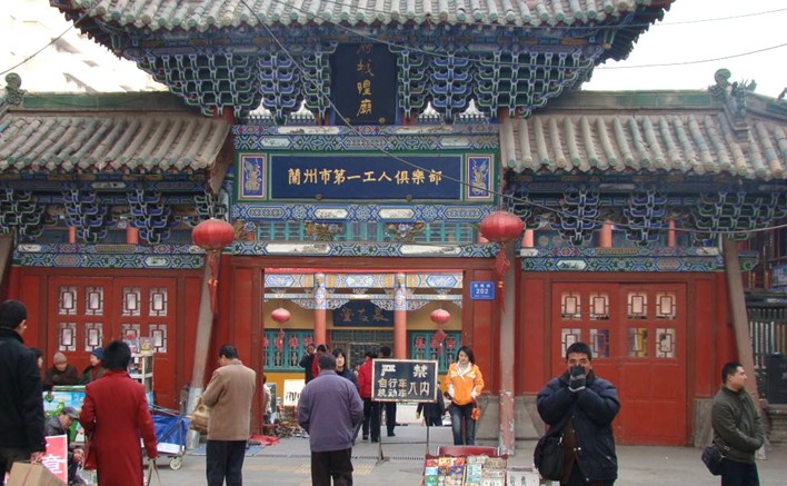 清乾隆年間(1736—1795)毀于大火,后重修。坐北向南,占地12000平方米,建筑面積4000平方米。大門3間,為忠烈侯坊,二門為硬山頂式環(huán)廊戲樓,北有卷棚歇山頂式享殿,后為重檐歇山頂式正殿,左右有廂房、鐘鼓樓等?;乩认略斜诋嫞F(xiàn)已不存。1956年辟作蘭州市第一工人俱樂部。