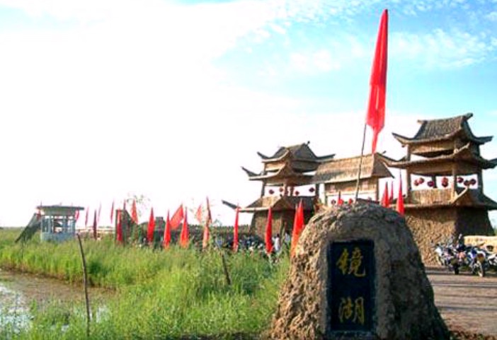 鏡湖生態(tài)旅游區(qū)位于巴彥淖爾農(nóng)墾臨河農(nóng)墾西側(cè),距臨河城區(qū)北9公里處,占地面積2500余畝,南部是綠色的草原,西部是三千畝連綿起伏的沙漠,北面是農(nóng)田,一千二百多畝平靜的湖面居中。湖內(nèi)“騎士莊園、弓箭俱樂部、水上迷宮、綠島餐廳、休閑群島、野炊餐飲島、大觀園飯店”等旅游、度假、娛樂、生態(tài)建設(shè)景觀各具特色。