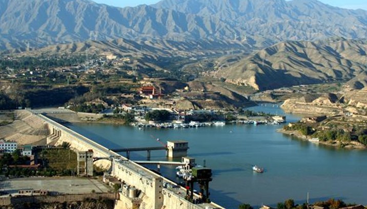在甘肅永靖縣境內(nèi)。黃河兩岸崇山峻嶺, 形成峽谷。1974年建成具有發(fā)電、防洪、灌溉、養(yǎng)殖、航運(yùn)等功能的綜合性水利樞紐工程。一條長(zhǎng)840米、高147米的巨大攔河壩把黃河攔腰斬?cái)? 形成了劉家峽水庫(kù)(庫(kù)容57億立方米,水域面積130平方公里),大壩下安裝了五臺(tái)國(guó)產(chǎn)大型水輪發(fā)電機(jī)組,成了總裝機(jī)容量122.5萬(wàn)千瓦年發(fā)電量57億度的黃河上游第一座水力發(fā)電站。