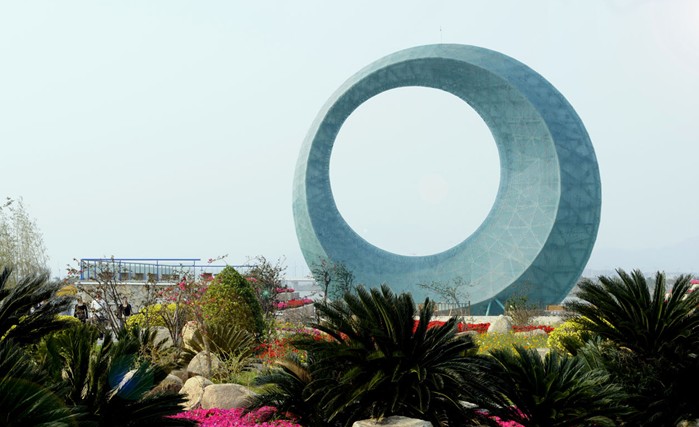 2100米長(zhǎng)的園博大道從大門向大海深處延伸。說(shuō)是大道,其實(shí)是一個(gè)帶狀景觀公園,按照金木水火土的理念設(shè)計(jì)建造。園博大道把9個(gè)島嶼串成了一條獨(dú)具南國(guó)特色的珍珠島鏈,各地園區(qū)星羅棋布分散在園博大道兩側(cè),游人置身其中就能領(lǐng)略到園博園別樣的風(fēng)情。